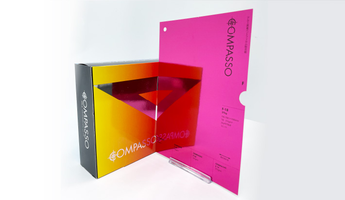 キャストコート紙の表面にアルミ蒸着ペットフィルム(ピンク)を貼合した製品です。 ベース原紙は再生紙を使用しております。 |