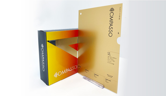 キャストコート紙の表面にアルミペースト加工(ゴールド)を施した製品です。 ベース原紙は再生紙を使用しております。 |