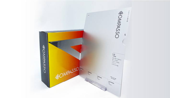 特徴 A2コート紙の表面にアルミペースト加工(シルバー)を施した製品です。
