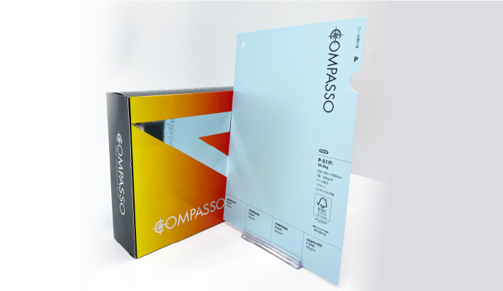 環境配慮型の商品として嵩高紙を使用しており、紙厚は310g/㎡ベースとほぼ同等の厚みとなります。